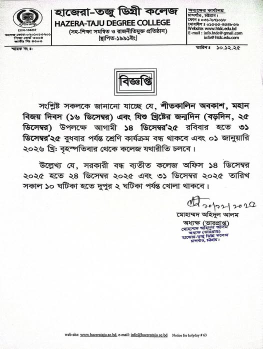 | কলেজ বন্ধের বিজ্ঞপ্তি Active New General | 2025-10-19 | Download |